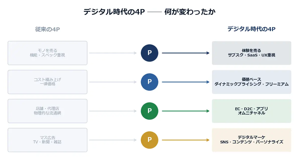 図解3: デジタル時代の4P変化 ― 従来の4Pからデジタル時代の4Pへ